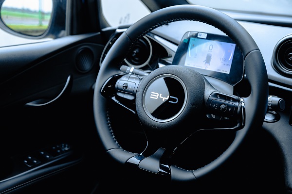 Không gian nội thất của BYD DOLPHIN mới được tối ưu theo hướng linh hoạt và thực dụng, với hàng ghế sau gập tỷ lệ 60:40, cho phép mở rộng dung tích khoang hành lý phù hợp với đa dạng nhu cầu sử dụng mà vẫn đảm bảo sự tiện nghi cho hành khách. Ghế ngồi được bọc da, trong đó ghế lái chỉnh điện 6 hướng và ghế hành khách phía trước chỉnh điện 4 hướng, giúp người dùng dễ dàng tùy chỉnh tư thế ngồi, gia tăng sự thoải mái trong các hành trình dài — yếu tố ngày càng được khách hàng đô thị đặc biệt quan tâm.Cụm vô-lăng trên xe