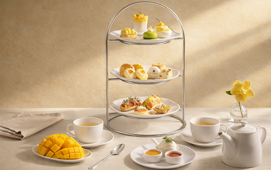 Hương vị ngọt dịu và tươi mát của xoài được thể hiện qua các loại bánh và trà chiều nhẹ nhàng, tạo nên cảm giác dễ chịu trong từng trải nghiệm.