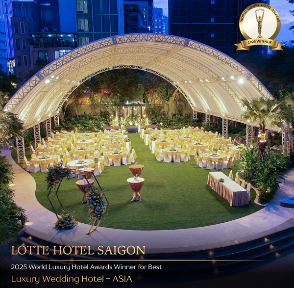 Dịch vụ cưới tinh tế – nơi mỗi khoảnh khắc đều được nâng niu : Giải thưởng “Khách sạn Tổ chức Tiệc cưới Sang trọng Nhất Châu Á” là sự công nhận cho chất lượng dịch vụ cưới hoàn hảo mà LOTTE Sài Gòn đã xây dựng suốt nhiều năm qua. Từ không gian sảnh tiệc lộng lẫy với trần cao, ánh sáng tinh tế, đến thực đơn được chế biến bởi đội ngũ đầu bếp chuyên nghiệp, mọi chi tiết đều được chăm chút tỉ mỉ để tạo nên ngày trọng đại hoàn hảo cho các cặp đôi. Đội ngũ tư vấn và phục vụ tận tâm của khách sạn luôn đồng hành, biến mỗi lễ cưới trở thành một kỷ niệm trọn vẹn, mang đậm dấu ấn cá nhân.