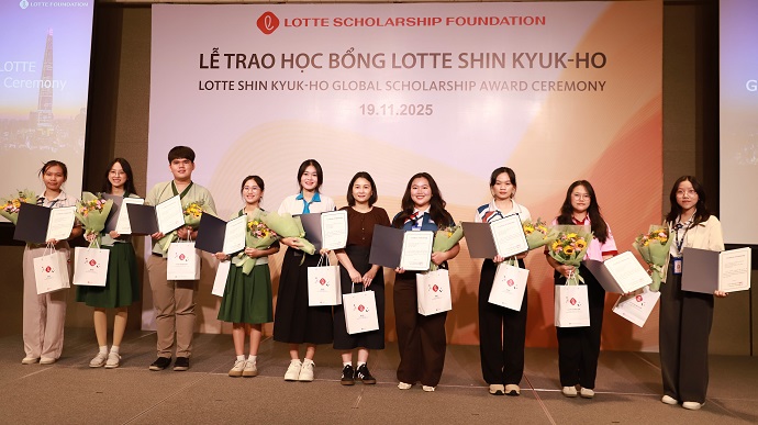 Lễ trao học bổng lần thứ 25 do Quỹ Học bổng Lotte (thuộc Tập đoàn Lotte) tổ chức đã diễn ra thành công tại Khách sạn LOTTE Sài Gòn vào ngày 19 tháng 11, năm 2025. Năm nay, 50 suất học bổng trị giá 450 USD mỗi suất đã được trao cho các sinh viên xuất sắc đến từ 5 trường đại học trên địa bàn Thành phố Hồ Chí Minh.