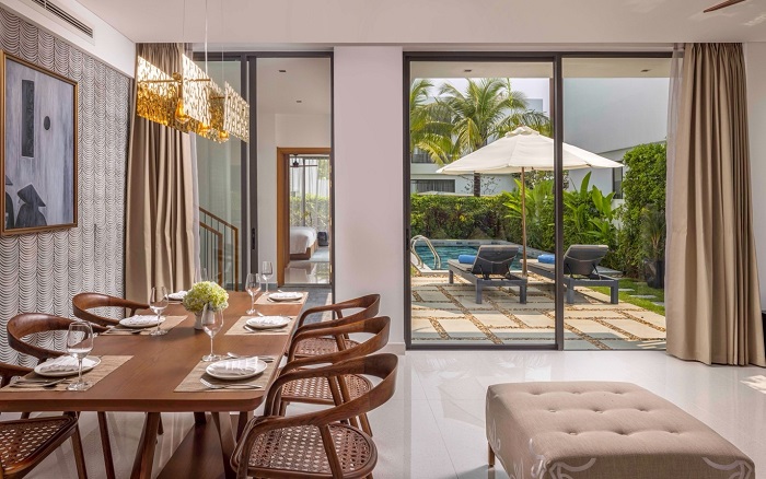 Với các lựa chọn biệt thự hai và ba phòng ngủ, mỗi không gian đều được thiết kế để mang lại sự riêng tư tuyệt đối, bao gồm phòng khách riêng, bếp đầy đủ tiện nghi và hồ bơi riêng — thể hiện chuẩn mực sống biển tinh tế nhất.
