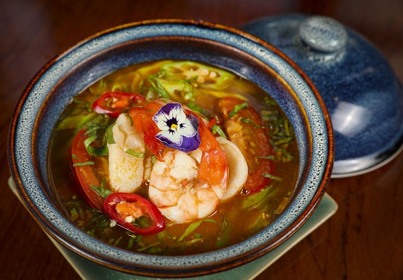 Sự gắn kết càng thêm đậm đà khi món Canh chua hải sản tôm sú, sò điệp, mực, đậu bắp và bạc hà nghi ngút khói được đặt giữa bàn ăn. Từ nền tảng truyền thống, món canh chua quen thuộc được nâng tầm với những nguyên liệu thượng hạng như tôm sú chắc thịt, sò điệp và mực tươi giòn. Vị nước dùng ngọt thanh từ hải sản hòa quyện cùng me chua, điểm xuyết thêm chút ấm nồng của ớt, khi được sẻ chia trong dịp sum vầy, tinh thần đoàn viên lan tỏa một cách tự nhiên nhất.